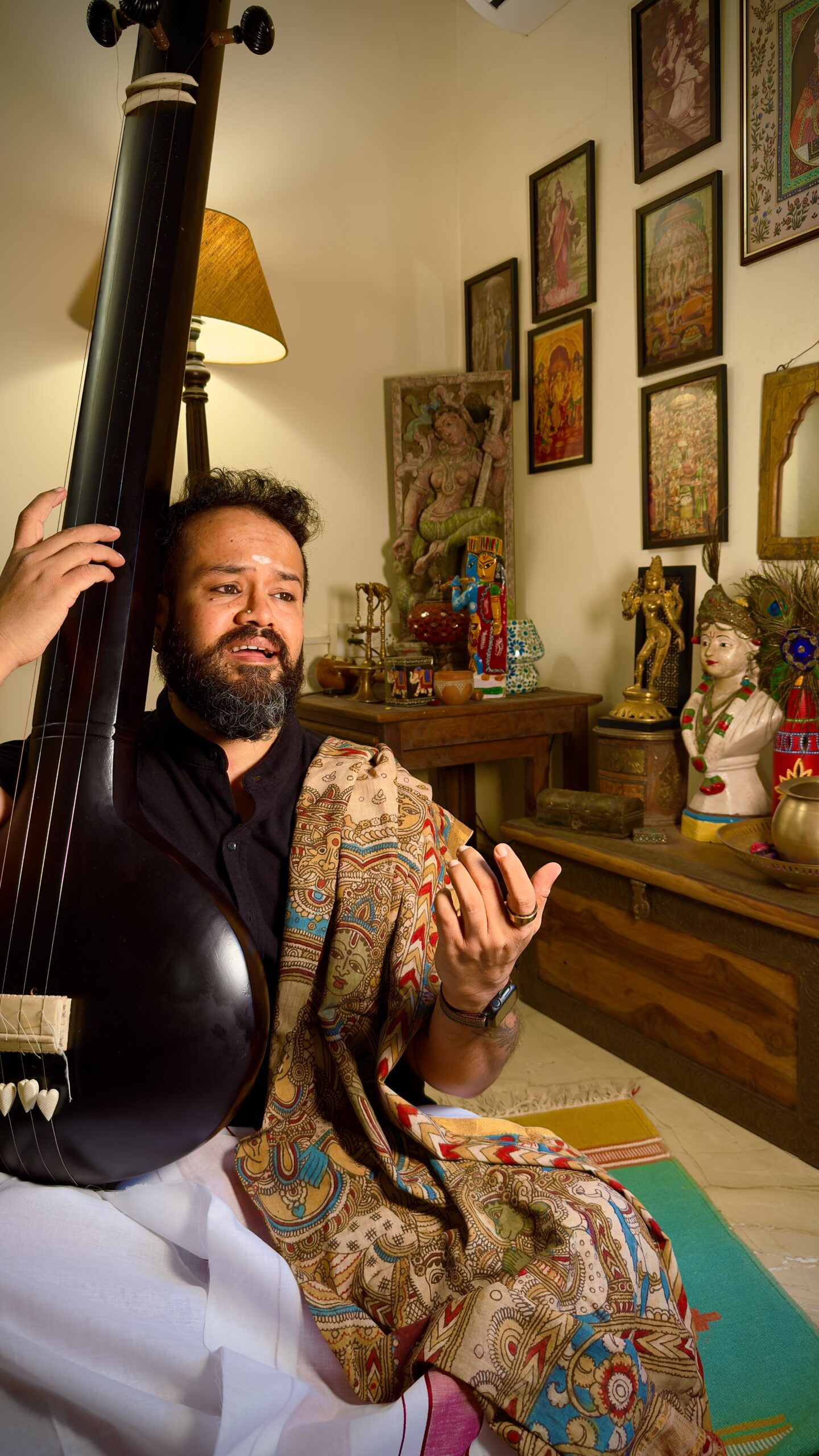 Karthik also is a popular playwright and Theatre Director and is doing lot of work in the modern theatre space. He is often invited to speak at diversity forums and Queer initiatives. Karthik has been very vocal of his journey as a queer artist. He has published on Queer Issues on various websites and blogs. He has written and directed Plays that meditate on gender, identity and LGBTQ rights. He has also created multiple innovative compositions in Carnatic Classical style that are queer themed. Karthik is also writing Insta -poetry series that give us a sneak peek into queer life and experiences through poetic expression.